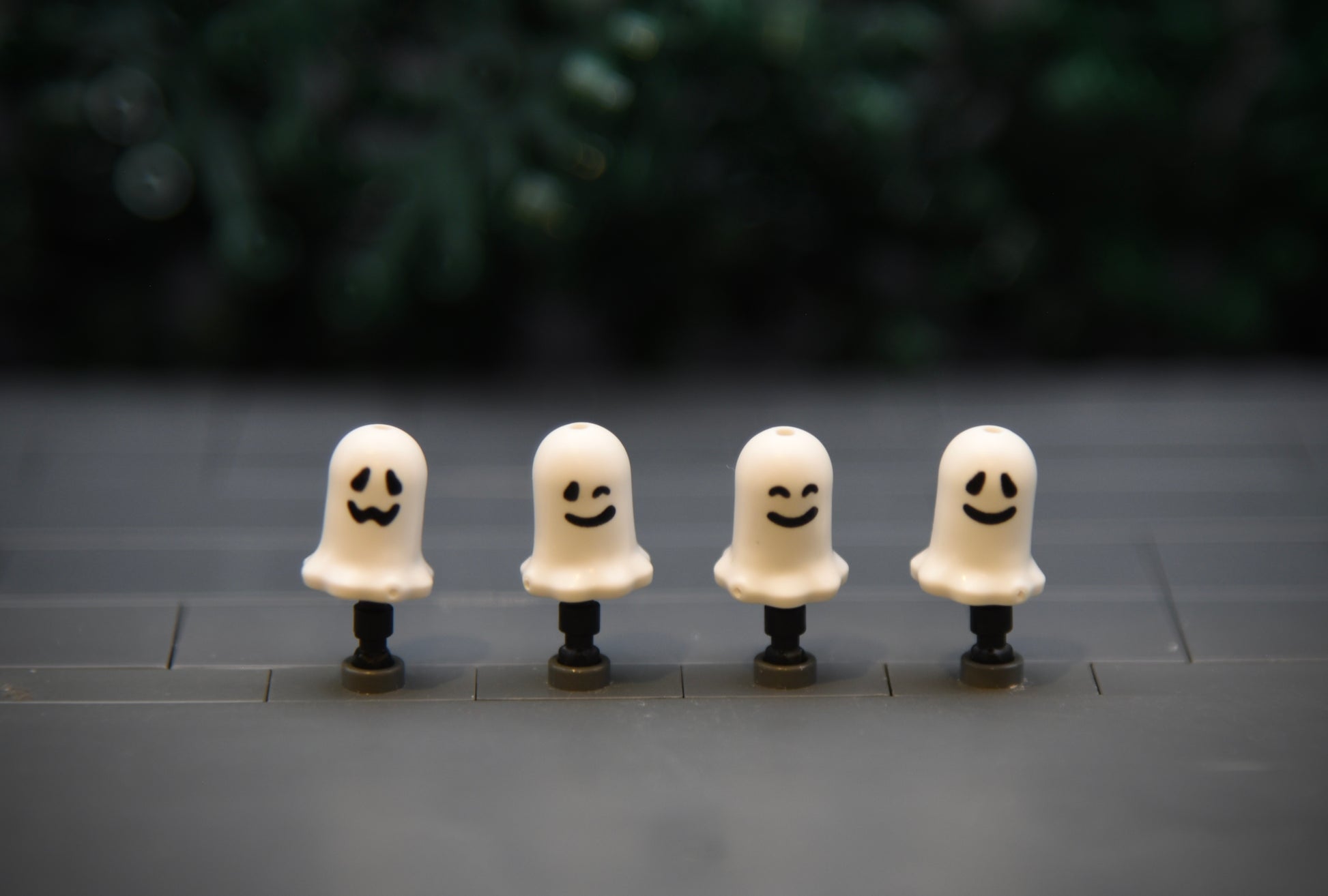 4 x Custom pad printed ghost faces on genuine Lego elements.